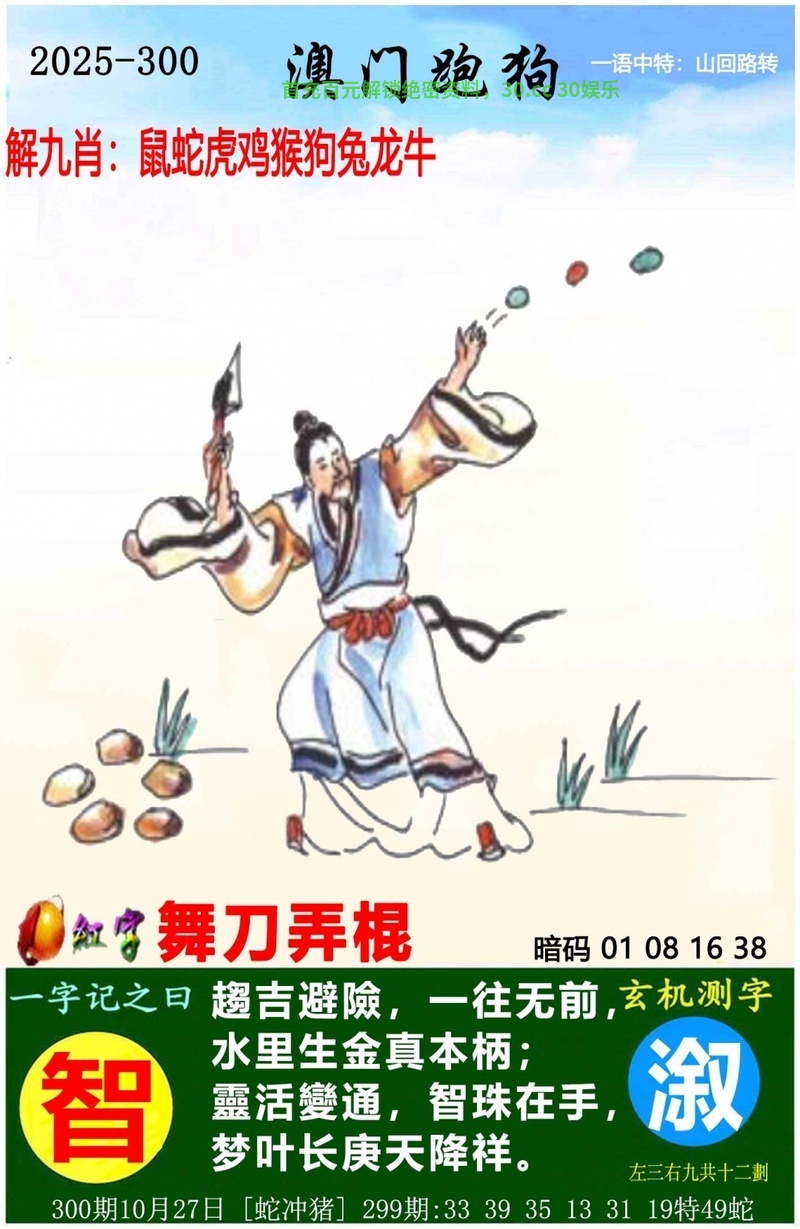 | 300期:【跑狗特码诗】开虎40 玄机诗云趨吉避險,一往无前,水里生金真本柄;靈活變通,智珠在手,梦叶长庚天降祥。 诗句解图中是一个男人手里拿着斧头另一只手朝天空扔了三颗球准备去砍。解男肖鼠牛虎龙猴狗马,舞刀弄枪。解吉美生肖兔龙蛇马羊鸡 单双:双数 |